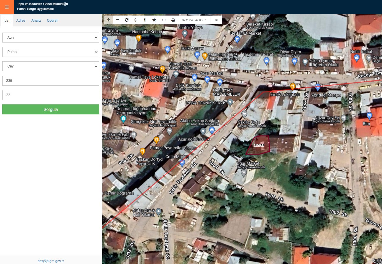 Adres : AĞRI, PATNOS, ÇAY MAH. 1002 SOK. NO:7 235 ADA 22 PARSEL