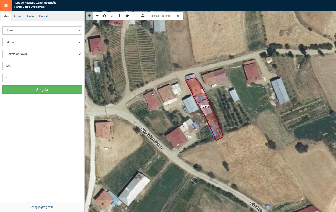Adres : TOKAT, MERKEZ, BOZALATAN MAH. 127 ADA 4 PARSEL